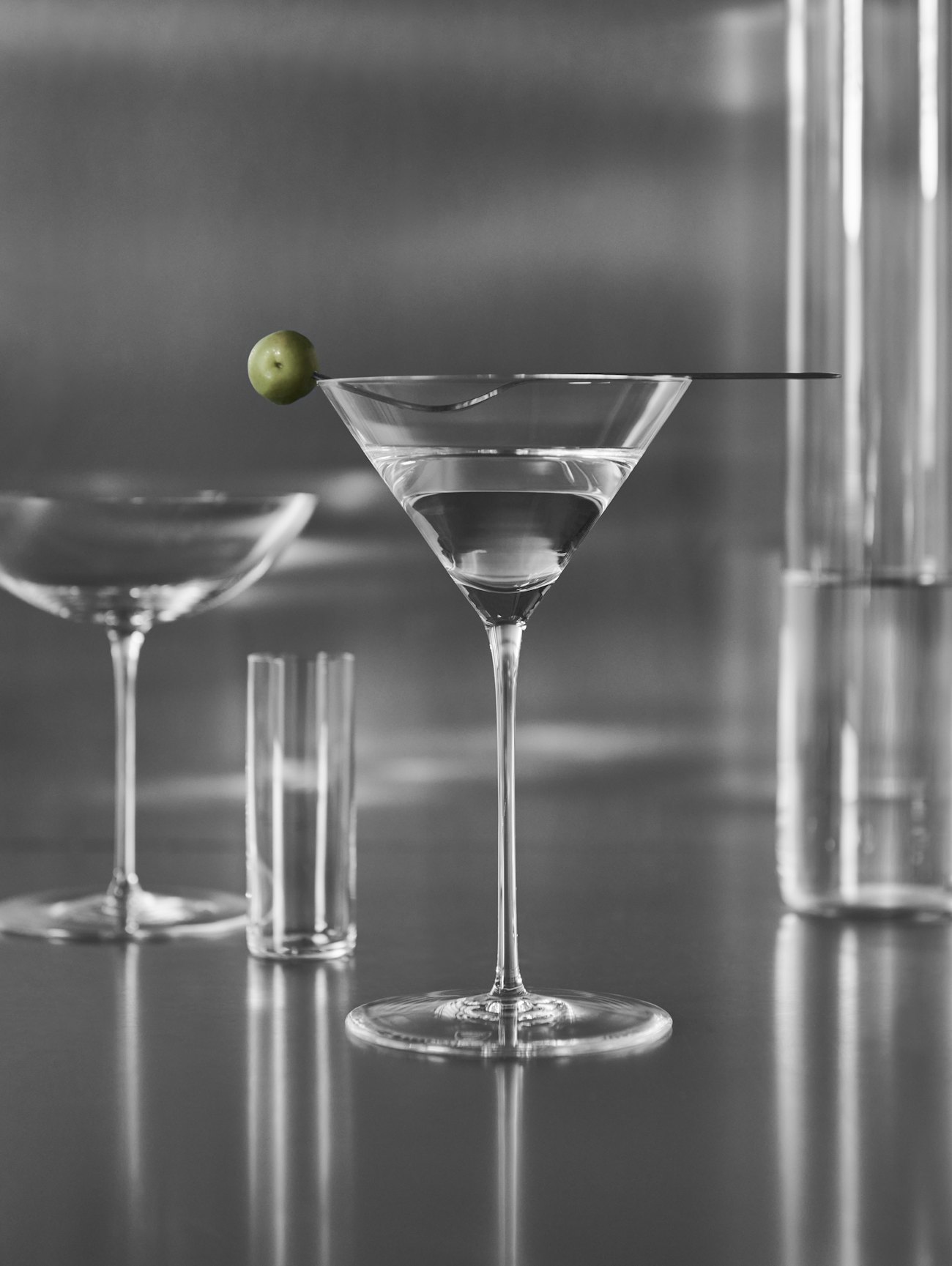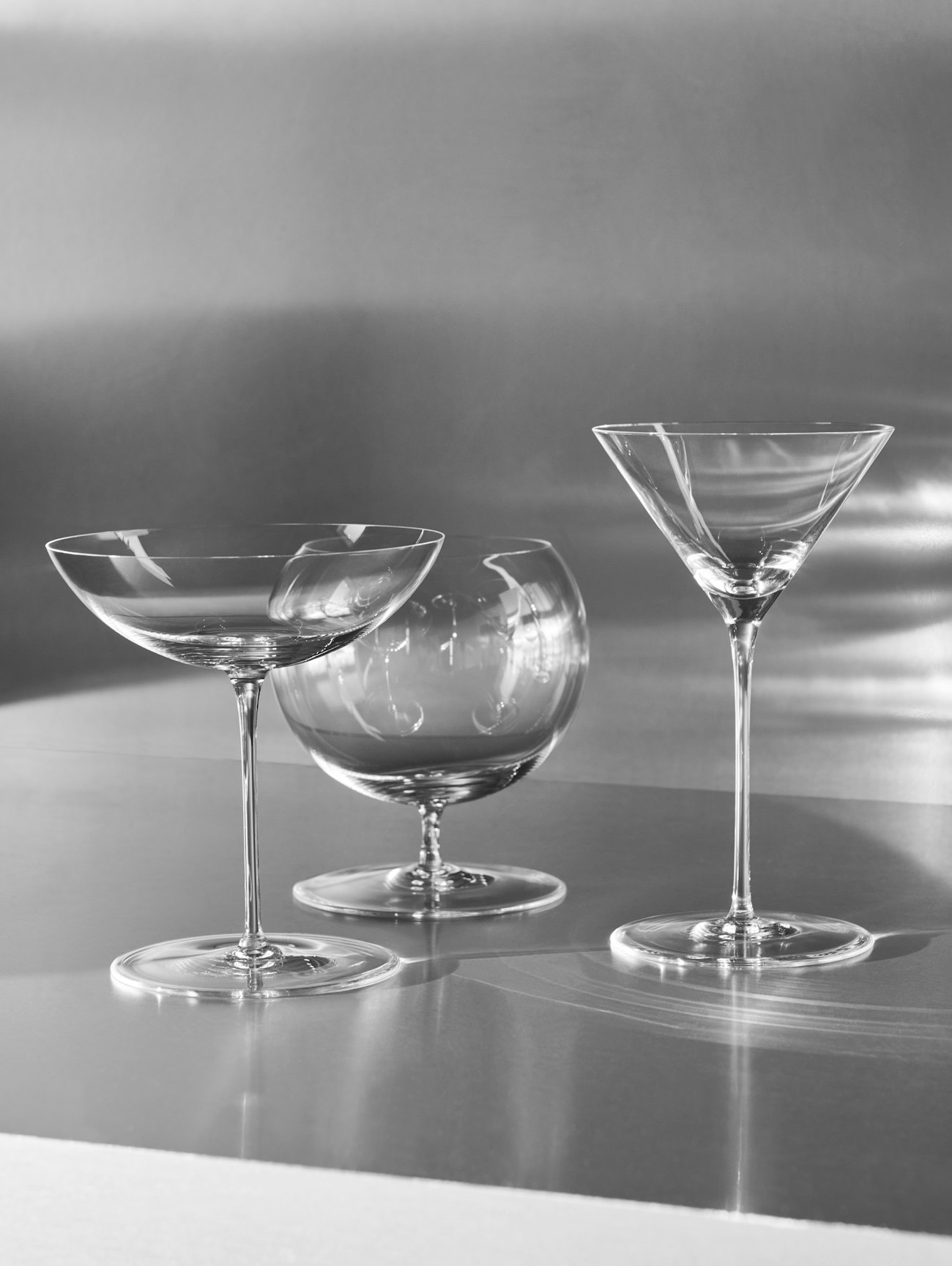 Spheres, cylinders and cones form the basis of the aptly named series Geometry, a true Scandinavian design statement where intriguing geometric shapes and a confident stature combine to deliver an iconic, timeless and unmistakable Orrefors design. Cup, stem and foot have in essence become stylized geometry. Mouth-blown. This glass holds 26cl and is suitable for cocktails. Design by Claesson Koivisto Rune.